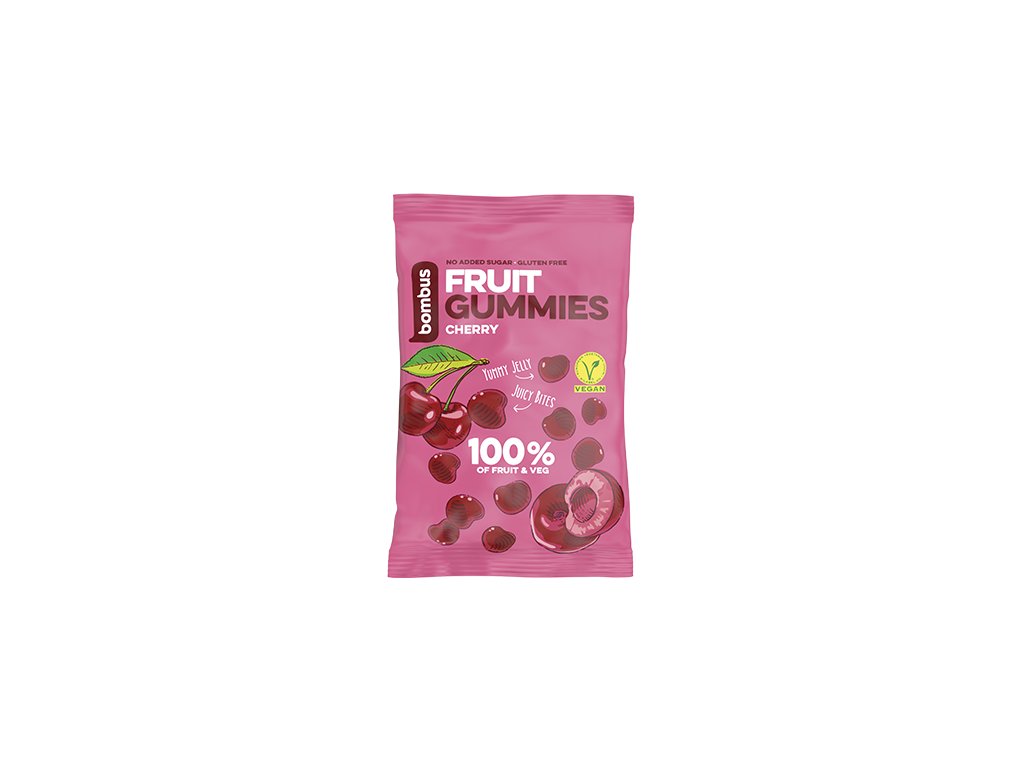 Osvěžující třešňové gummies vás překvapí silnou ovocnou chutí! Obsahují 100 % ovocné složky a šťávu z černé mrkve, bez přidaného cukru, barviv a konzervantů a jsou zdravou alternativou přeslazených cukrovinek.Doplňkové parametry