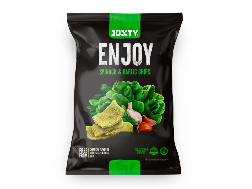 Chipsy bramborové se špenátem a česnekem 40 g JOXTY ENJOY CHIPS