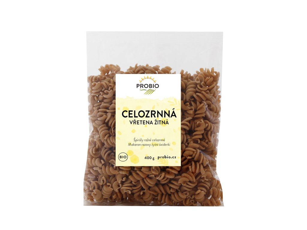Vřetena žitná celozrnná - žito do vašeho života. Vřetena žitná celozrnná - proč nezkusit žito v podobě těstovin? Lidé, kteří jedí žito, mají prý odolný imunitní systém, jsou houževnatí, pevní a zdraví. My to máme vyzkoušené. Žito dalo vřetenům tmavou barvu, výraznější chuť a pevnější strukturu. Dobře vás zasytí a mohou si je dopřát i vegani, jsou totiž bezvaječné. Dejte si je k omáčkám, masovým i zeleninovým jídlům.Skladujte při teplotě do 25 °C a relativní vlhkosti vzduchu nejvýše do 70 %.